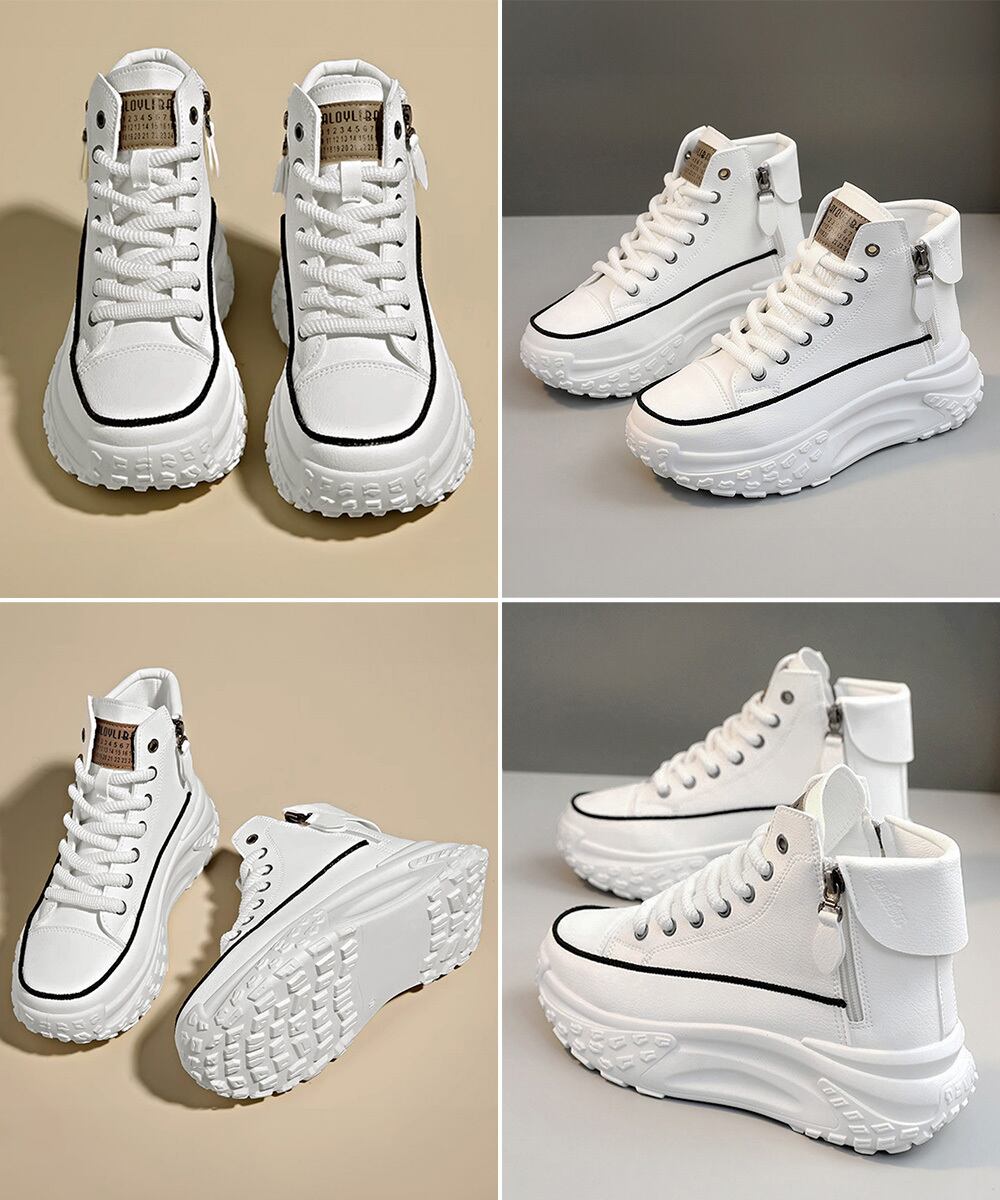 韓国 レースアップスニーカー 歩きやすい おしゃれ 美脚脚長 疲れないシューズ ボリュームソール 厚底スニーカー白 四季